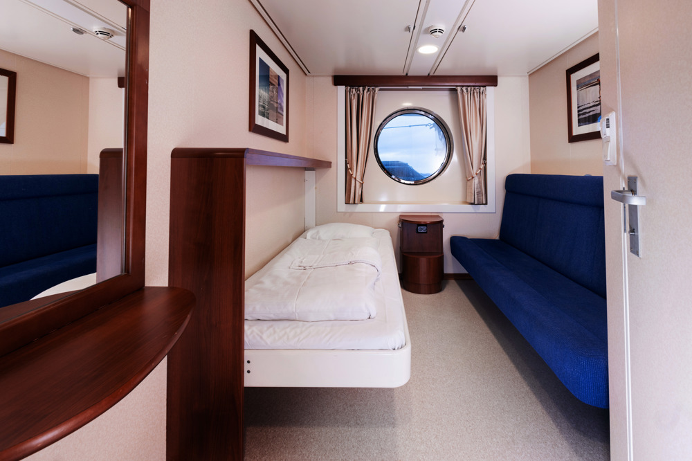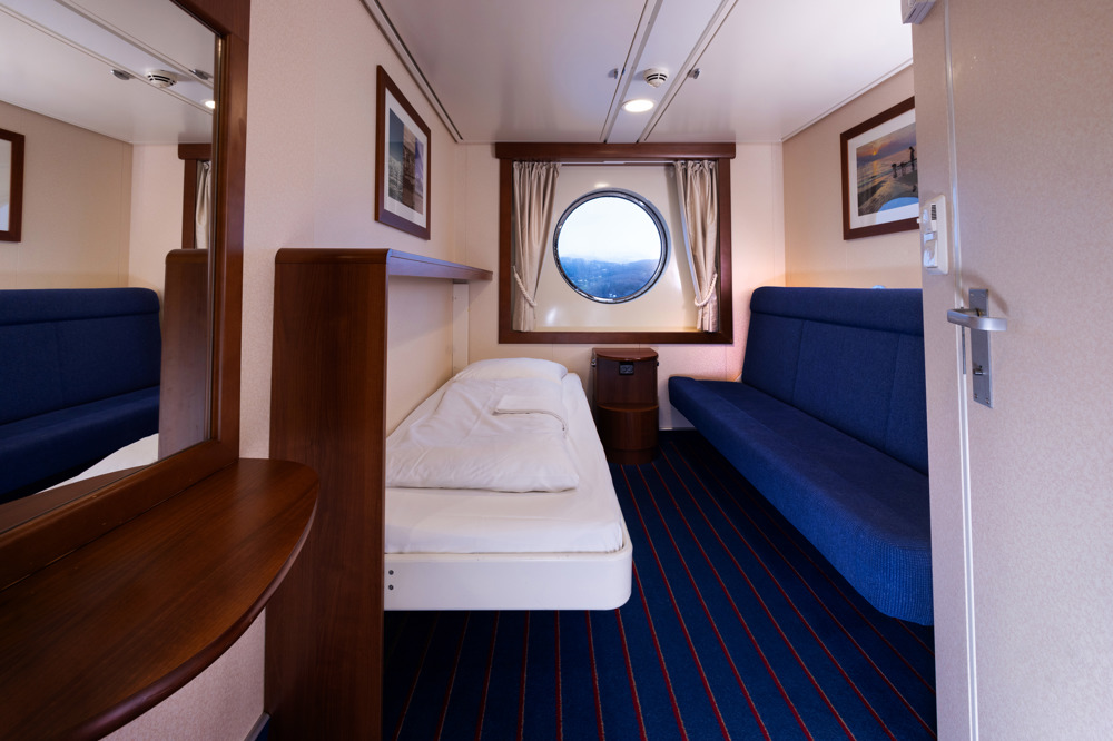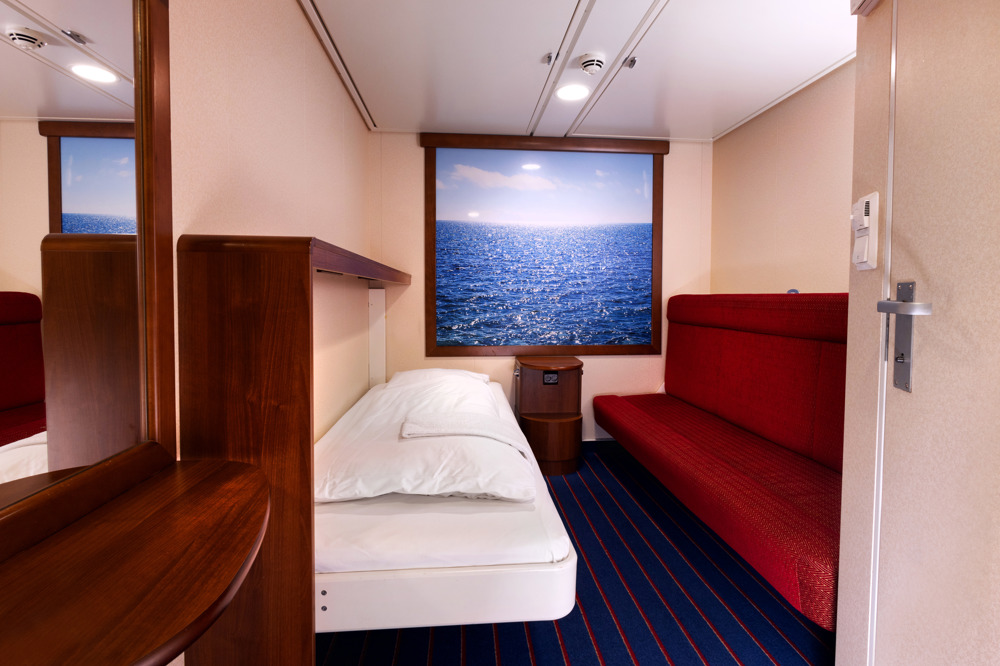 1-sengs indvendig kahyt over pianobar. Med eget toilet og bad.