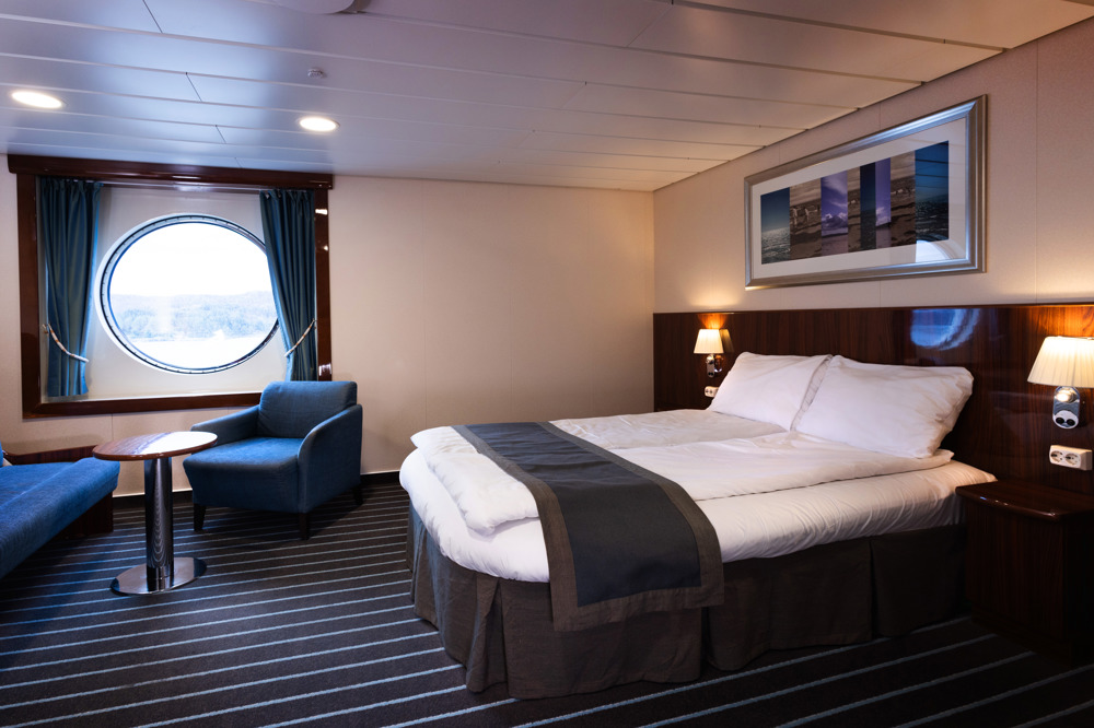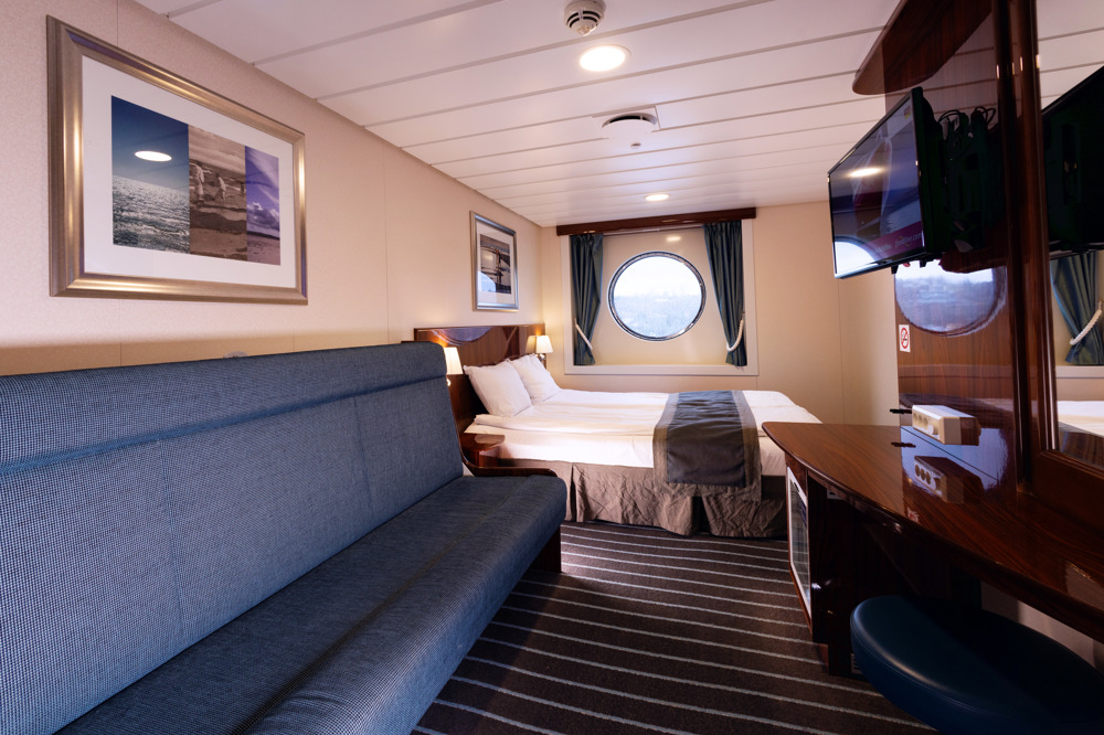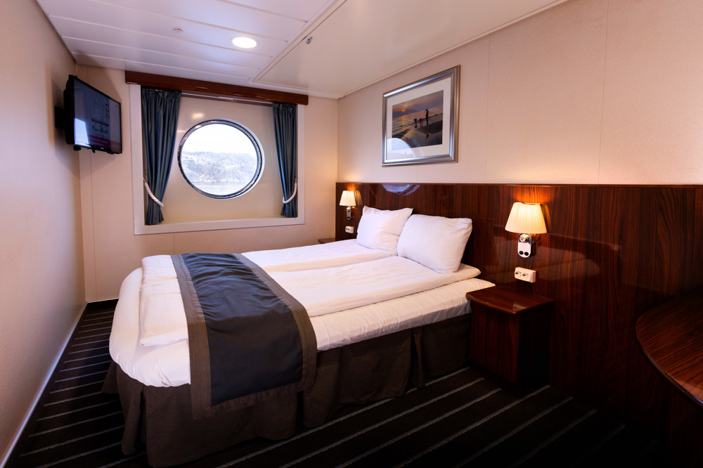 udvendig kahyt med havudsigt. Eget bad og toilet.