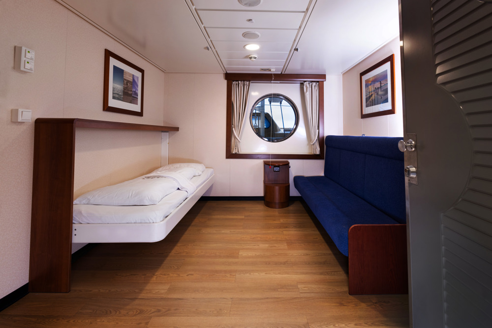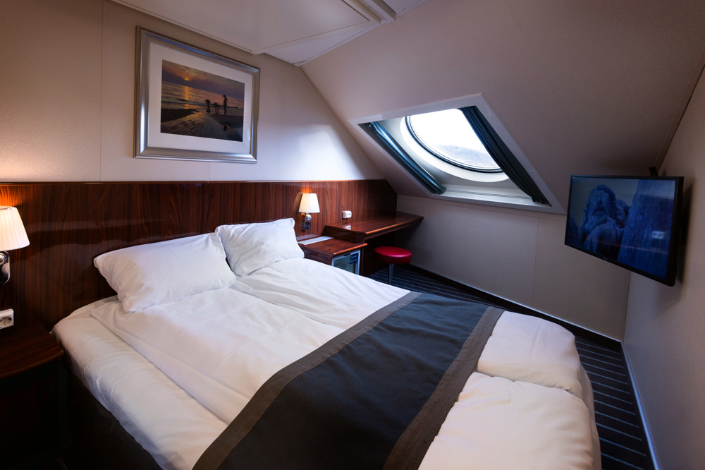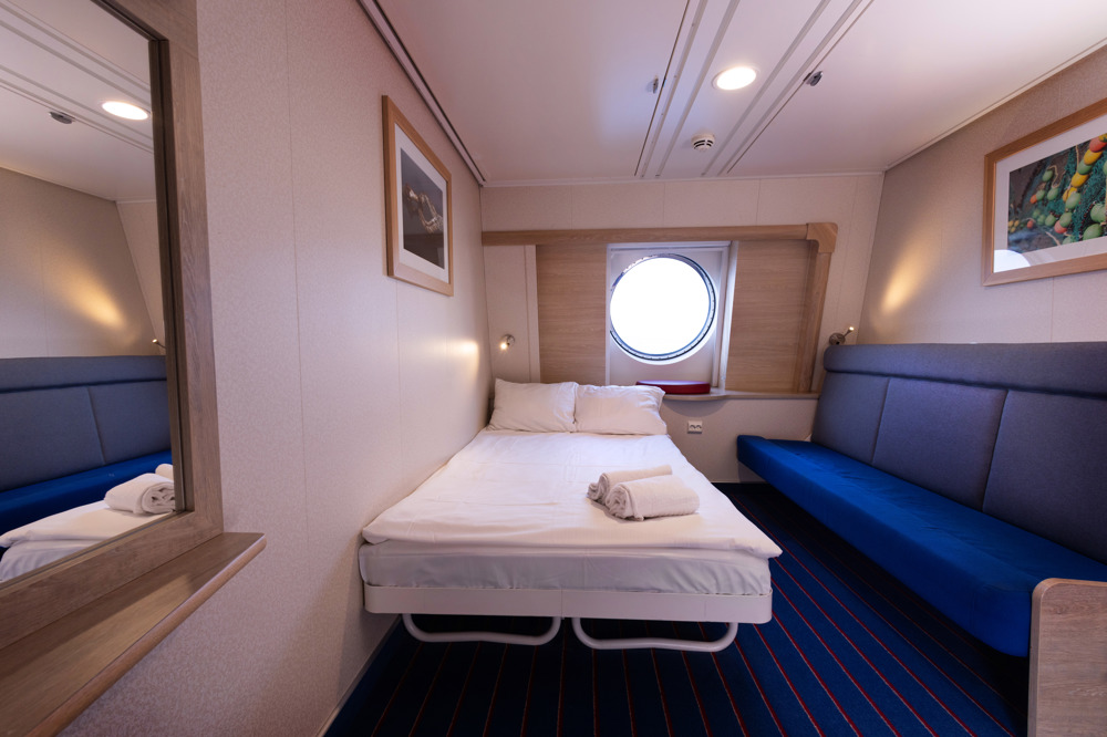 2-sengs udvendig kahyt med begrænset udsyn 1-2 pers. Eget bad og toilet