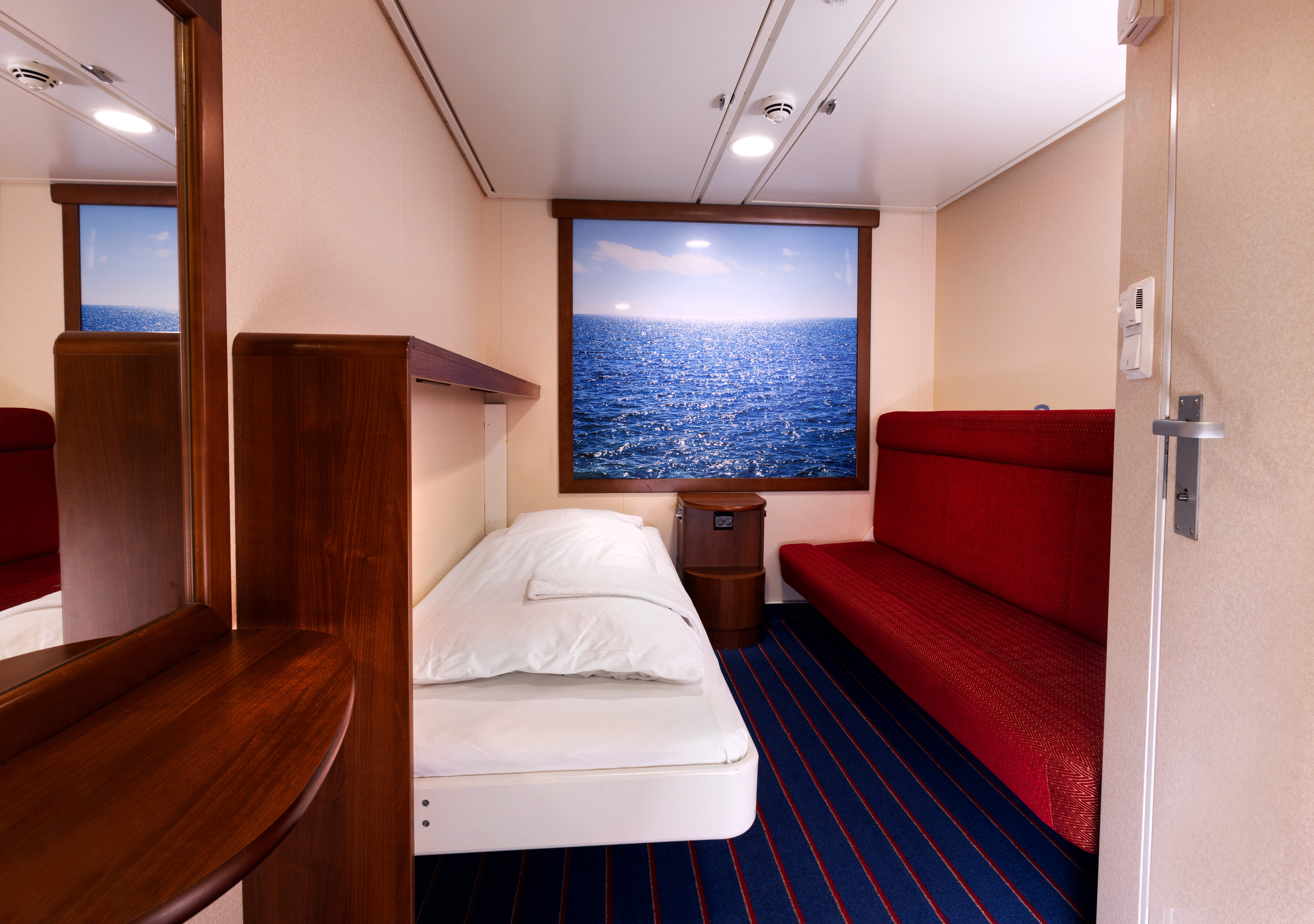 Komfortable kahytter uden havudsigt til 3-4 personer. Disse kahytter har seng, sovesofa og to udtrækkelige køjesenge, samt eget badeværelse med brusebad og toilet. Størrelsen på kahytterne er 8,5 m², og de ligger på dæk 8. Vi gør dig opmærksom på, at der kan forekomme støj fra natklubben.