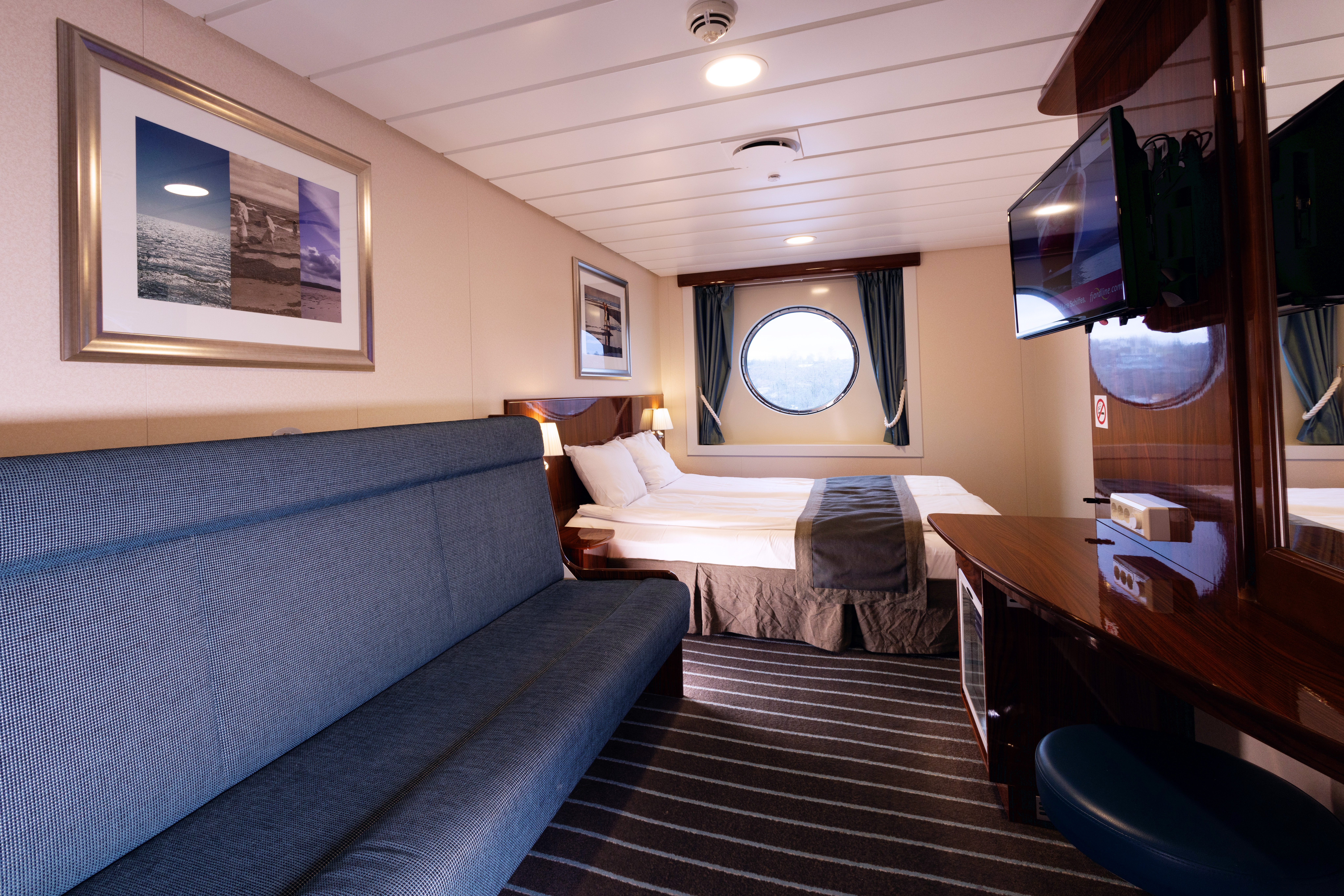 Vores store deluxe-kahytter med plads til 1-3 personer. Kahytterne har både dobbeltseng og sovesofa, velegnet til 1 barneseng, TV, minibar, køleskab samt eget badeværelse med brusebad og toilet. Størrelsen på kahytterne er omkring 14 m², og de ligger midtskibs på dæk 8.