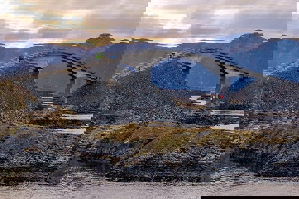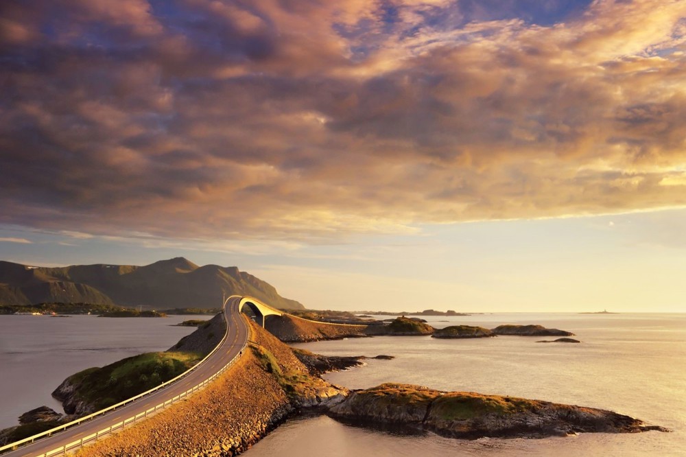 UDFLUGT KSUS1 Atlanterhavsveien, den 8,2 km lange spektakulære vejstrækning, bugter sig fra ø til ø gennem smuk og dramatisk natur - en rute som også er kåret til en af verdens smukkeste bilveje. På turen besøger vi Stavkirken Kvernes, der ligger flot på Averøy. Turen slutter i den lille fjordby Molde "rosernes by".