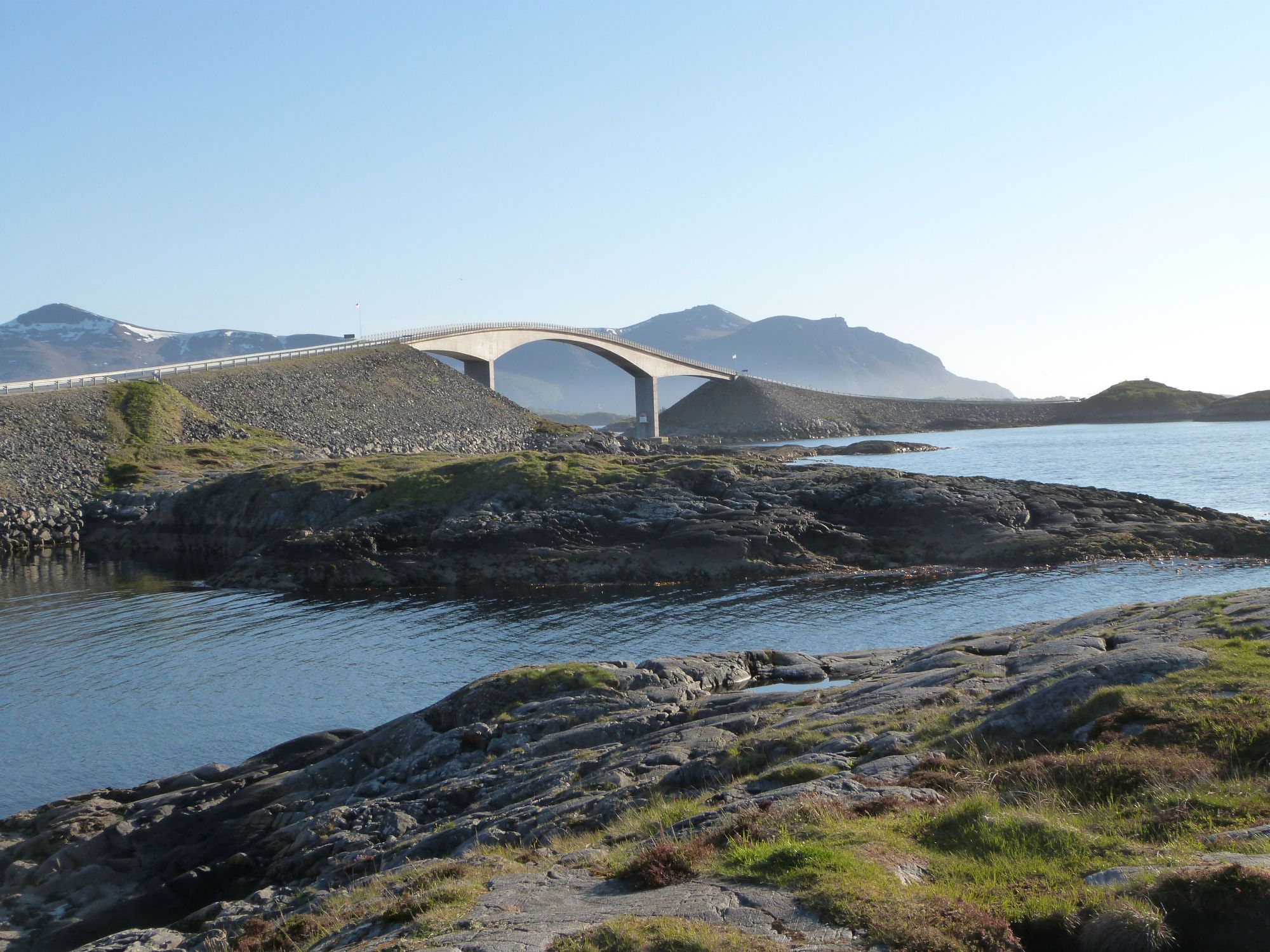 NIVEAU 1. Atlanterhavsvejen, er 8,2 km lang, bygget på 8 broer og omgivet af et overdådigt og smukt landskab., Atlanterhavsvejen er en af Norges mest besøgte turistattraktioner og blev kåret til ”århundredets bygningsværk” i 2005. Vi starter med en kort sightseeingtur i Kristiansund, inden vi fortsætter til Averøy. Her skal vi besøge Kvernes stavkirke, med sin smukke beliggenhed på Averøy. Så går turen til ”Bjarmars Favorittkro”, hvor du får serveret husets specialitet: Bacalao med lokale ingredienser. Turen forsætter ad Atlanterhavsvejen, hvor vi zigzagger langs den dramatiske kyst, rækker af små øer og holme alt forbundet af broer og slutter med en kort sightseeing i Molde.