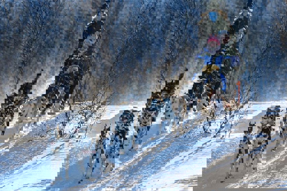 UDFLUGT KKNB4 Turen går til det Snehotellet, ved siden af Gabba Rensdyrpark. Her skifter vi til ekstra varmt tøj inden de ivrige Alaskahuskyer spændes for slæden og erfarne fører tager dig trygt gennem det frosne vinterlandskab.