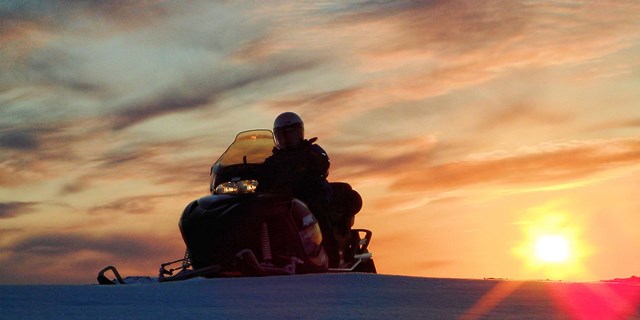 NIVEAU 3. Vi skal ud på en spændende tur med snescooter hvor vi sidder to personer på hver, og ud på en frossen fjord, over det smukke landskab midt i den arktiske vinter. På denne tur hører du også om det samiske folks historie, det ekstreme arktiske klima og det enestående dyreliv, der findes i dette unikke område. Efter turen trænger vi til lidt varmt at drikke og du kommer også til at smage tørret rensdyrkød medens vi sidder i en dejlig varm lavvo. Du får grundig instruktion i sikkerhed på snescooter, inden oplevelsen starter.