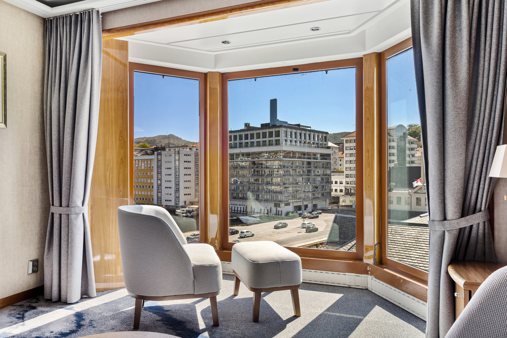 Skibets mest eksklusive kahytter. Disse komfortable suiter ligger på øvre dæk og har bl.a. siddegruppe, TV. Badeværelse med brus/toilet. De fleste med dobbeltsenge. I alle suiter er der badekåbe, tøfler og lækre badeprodukter.