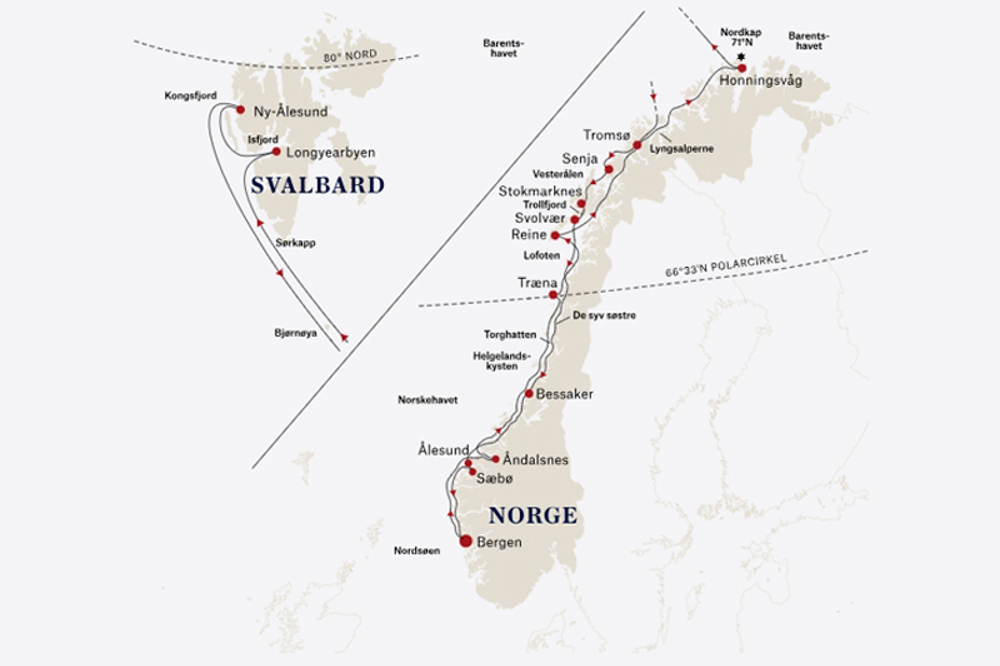 Oplev en spektakulær 15-dages gruppetur med Svalbardlinjen Bergen-Svalbard-Bergen. Vores hjem på turen er om bord på MS Trollfjord, hvor du får en unik mulighed for at udforske de nordlige egne i komfort og stil. Turen inkluderer en erfaren rejseleder og er med all-inclusive pakke, så du kan slappe af og nyde rejsen uden bekymringer.