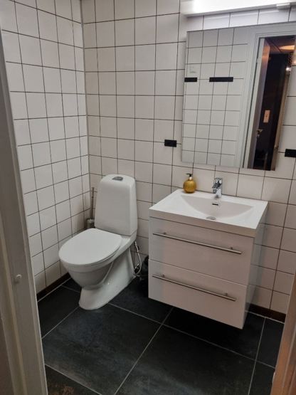 2 personers lejlighed, 22 m². 1 soveværelse. Kombineret køkkenafdeling/opholdsstue med TV og sovesofa til 2 pers. 1 soveværelse. 1 bruser, 1 WC. Adgang til fælles vaskerum.
