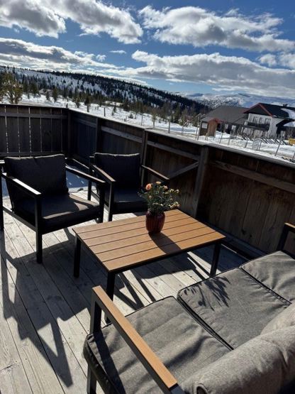 Leiligheten er på 65m2 og har 5 sengeplasser fordelt på 2 soverom, 1 med dobbeltseng og køye over og 1 med køyeseng, stue med åpen kjøkkenløsning og bad. Gratis wifi og Riks-TV. Koselig veranda med flott utsikt. Leiligheten ligger øverst på Gålå i bygget ovenfor Røsslyngstua kafè. Flott utsikt mot Jotunheimen, Gålåvannet og Valsfjell. Leiligheten er nærmeste nabo til det fantastiske løypenettet med 630 km langrennsløyper. Om sommeren er det et fantastisk turterreng for å gå, løpe eller sykle. Mange koselige vann å fiske i eller padle med både kano og kajakk, eller ro med robåt.