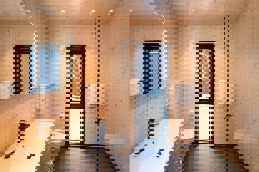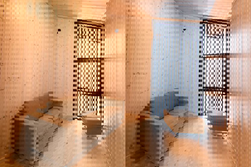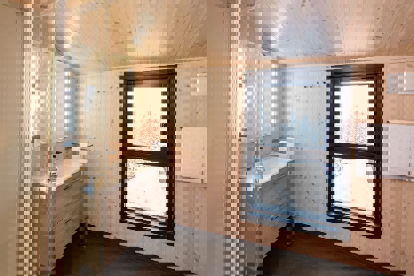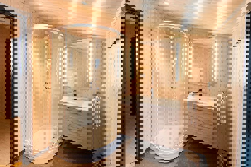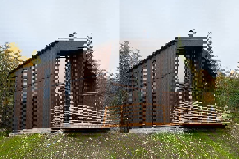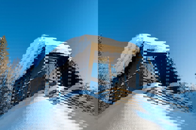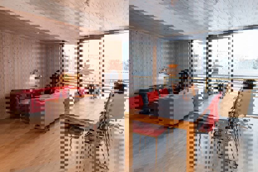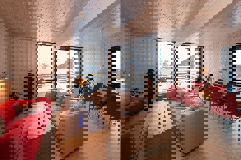 Hytte i 2 etager, 8+2 senge, 110 kvm, 4 soveværelser. Hytte med høj standard, designet med fokus på komfort og funktionalitet, hvilket gør dem ideelle til både par og familier. Åben planløsning med køkkenafdeling. Opholdsstue med pejs, TV, siddegruppe og spiseplads til 10 personer. 2 brusere, 2 WC. Balkon. Hytten er privatejet, interiør kan derfor variere.