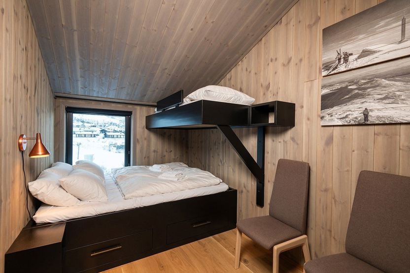 Soveværelse 1: 1 dobbeltseng. Soveværelse 2 + 3 + 4: 1 familiekøjeseng 120 cm bred underkøje. + 1 overkøje.