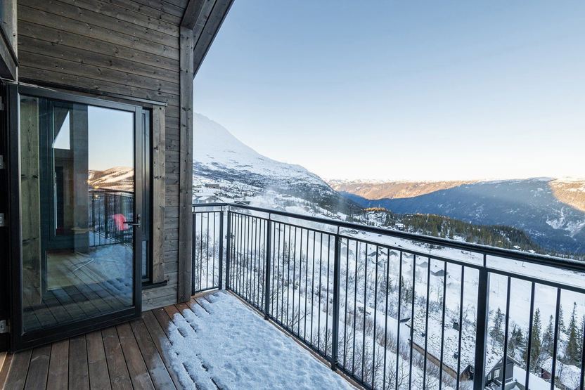 Opholdsrum med brændeovn, siddegruppe, TV, spiseplads til 8 personer. Vaskemaskine. Balkon, 1 garageplads. El-bil oplader mod betaling. Adgang til skiskab