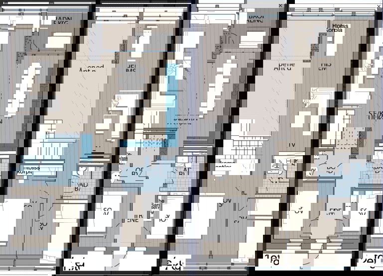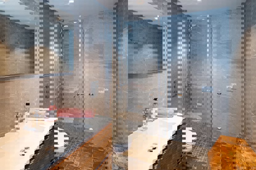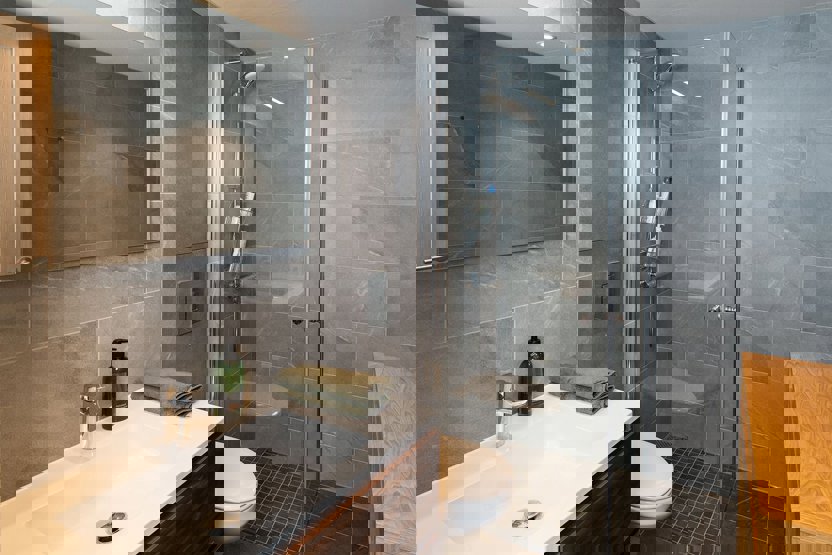 Bad 1: 1 bruser, 1 WC, vaskemaskine. Bad 2: 1 bruser, 1 WC