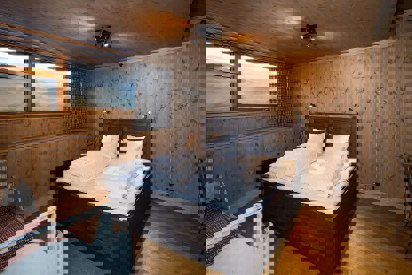 Lejlighed K303, 9 senge, 2 etager, 136 m2, 4 soverum. Åben planløsning med køkkenafdeling. Opholdsstue med pejs, siddegruppe og spiseplads til 9 personer. 2 bruser, 2 WC. Vaskemaskine. Balkon med udsigt. Garageplads, elbillader mod betaling.