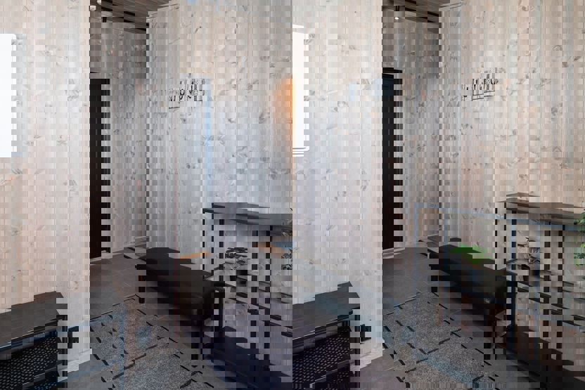 Lejlighed 6 senge, 82 m2, 3 soverum. Åben planløsning med køkkenafdeling. Opholdsstue med brændeovn, siddegruppe, og spiseplads til 6 personer. 2 brusere, 2 WC. Balkon