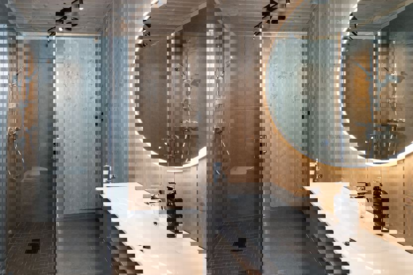 Bad 1 = med bruser, WC.