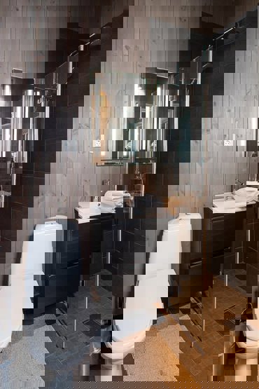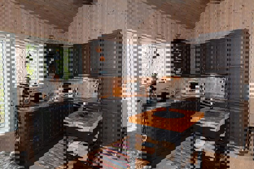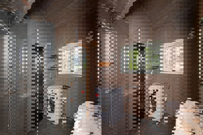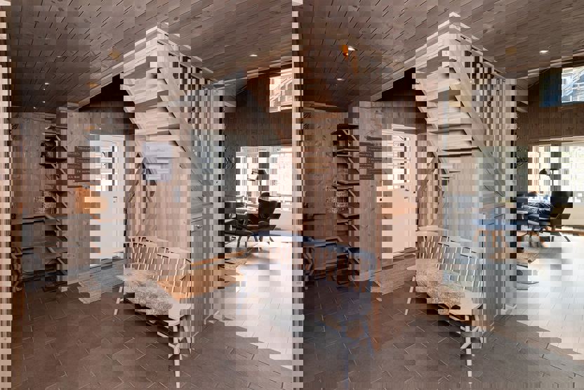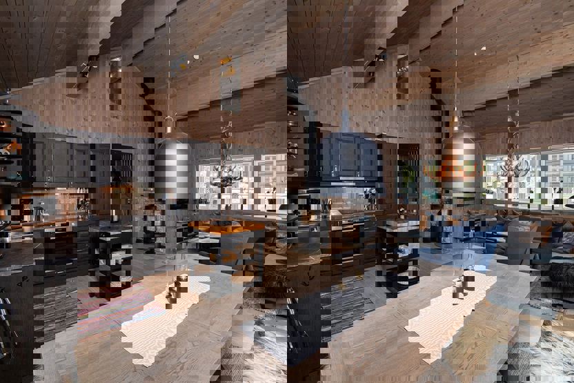 2 brusere, 2 WC, 1 sauna, vaskemaskine. Terrasse. Parkering, elbillader mod betaling. Hytten er privatejet, interiør kan derfor variere.