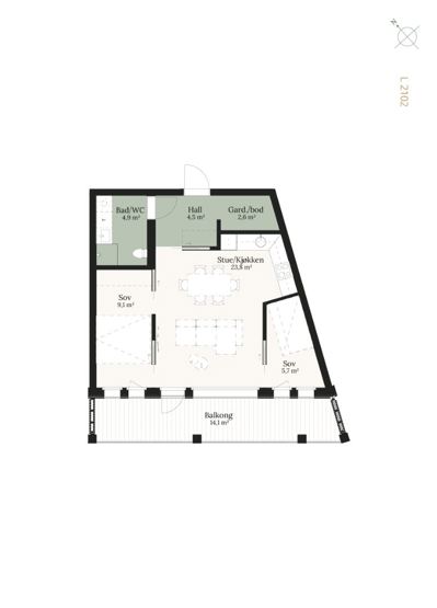 Kikut Alpin Lodge nr. 2102, 4 personer. Bygning 2. Lejlighed 51 kvm i stueetage. 2 soveværelser. Åben stue og køkkenløsning med spiseplads til 4 personer. Opholdsstue med sofagruppe, TV. 1 bruser, 1 WC. Terrasse med havemøbler.