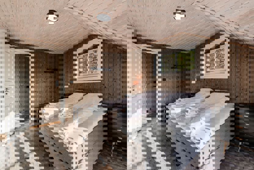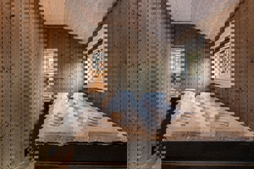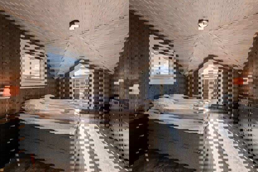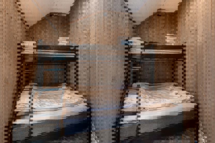 Soveværelse 1: 1 dobbeltseng. Soveværelse 2:1 dobbeltseng. Soveværelse 3: familiekøjeseng (120 cm bred underkøje)