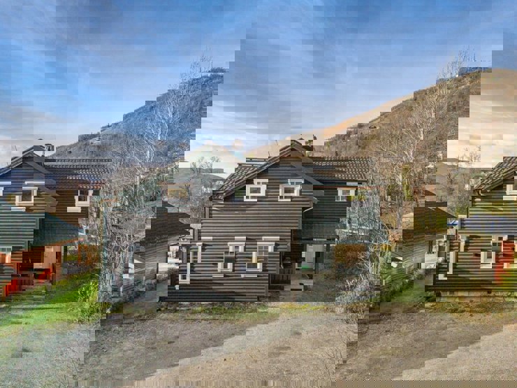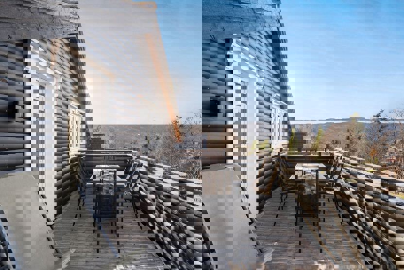 Slåttalivegen 4 - lejlighed nr. 2 på 1. sal, 6+1 sengepladser, ca 100 kvm. 3 soveværelser. Praktisk entre/gang med god plads til opbevaring og trappe til 1. sal. Hyggeligt og fuldt udstyret køkken med spiseplads til 7 personer. Stuen er rummelig med brændeovn, sofa og flere behagelige stole. Balkon med havemøbler til 4 personer, god solgang og udsigt mod Vestlia. 1 bruser, 1 WC.