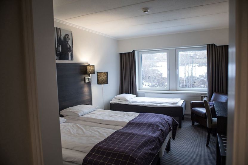 Trippelværelse: 2 personer. 22 kvm. En queensize (eller 2 enkeltsenge) + 1 enkeltseng. 1 badeværelse med bad og WC. TV og gratis Wi-Fi.