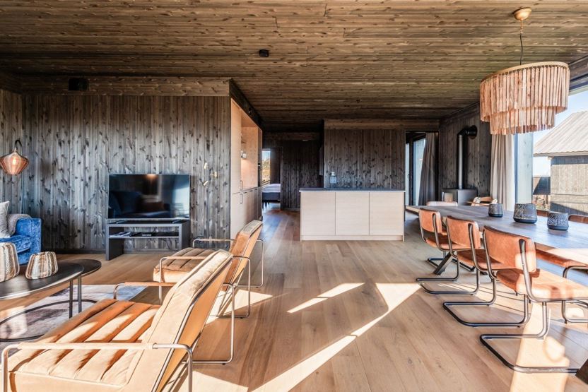 Ekstra info: Stue gaspejs, sofagruppe, TV. Adgang til egen skilocker. Indendørs parkering til 1 bil. Terrasse med havemøbler.
