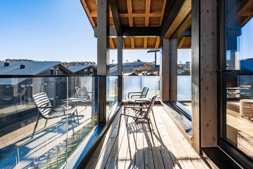 Ekstra info: Stue gaspejs, sofagruppe, TV. Inkl. 1 barneseng og -stol. Adgang til egen skilocker. Indendørs parkering til 1 bil. Balkon med havemøbler.