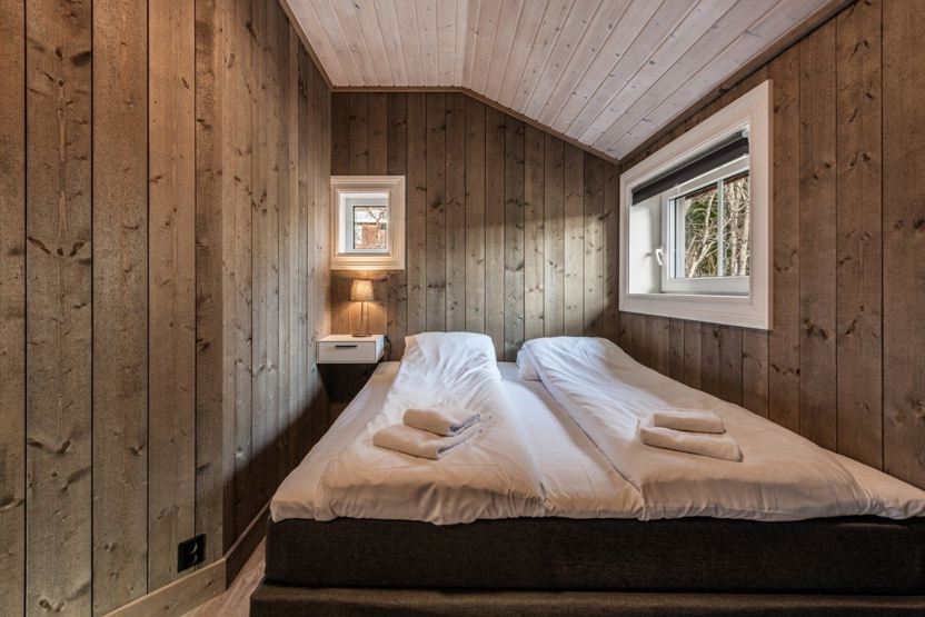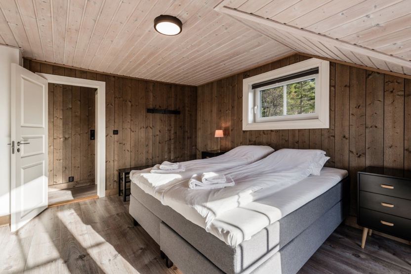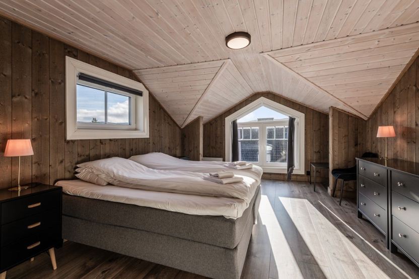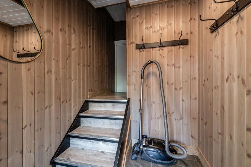 Slåttalivegen 4 - lejlighed nr. 2 på 1. sal, 6+1 sengepladser, ca 100 kvm. 3 soveværelser. Praktisk entre/gang med god plads til opbevaring og trappe til 1. sal. Hyggeligt og fuldt udstyret køkken med spiseplads til 7 personer. Stuen er rummelig med brændeovn, sofa og flere behagelige stole. Balkon med havemøbler til 4 personer, god solgang og udsigt mod Vestlia. 1 bruser, 1 WC.