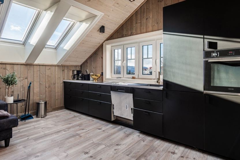 Køkken: indeholder bl.a. komfur med ovn, køleskab m/fryser, opvaskemaskine