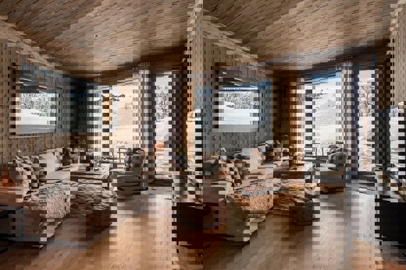Leiligheten ligger på fremste rekke mot alpinbakken.