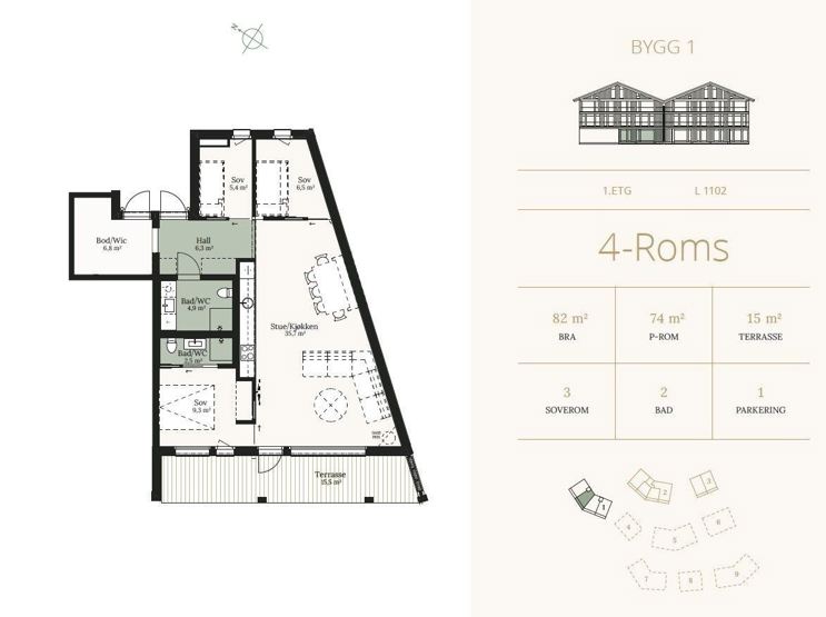 Leiligheten er innredet med åpen stue og kjøkkenløsning, har 3 soverom og 2 bad. Kjøkkenet er fullt utstyrt med spisebord og plass til 8 personer rundt bordet, oppvaskmaskin, vaskemaskin/tørketrommel, kjøleskap/fryser, kaffetrakter og komfyr m/stekeovn. Stuen er innredet med sofa, TV og gasspeis som gir god varme til rommet på kalde vinterdager. I gangen er det god plass til å henge av seg klær. Innendørs parkering for 1 bil. Fra stuen har dere tilgang til terrasse med utemøbler. Gjester har også tilgang til egen ski locker.