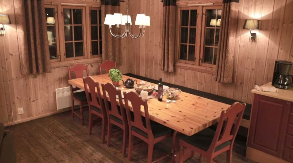 Standard hytte med 5 soverum - 12 personer. 145 kvm i 2 etager. Stor TV-stue med spiseafdeling og fuldt udstyret køkken. 2 badeværelser med bad og WC. Der er i alt 5 soveværelser: 2 soverum med dobbeltseng, 1 soverum med køjeseng, 2 soverum med enkeltsenge. Brændeovn. Sauna, Støvletørre. Indretning kan variere.
