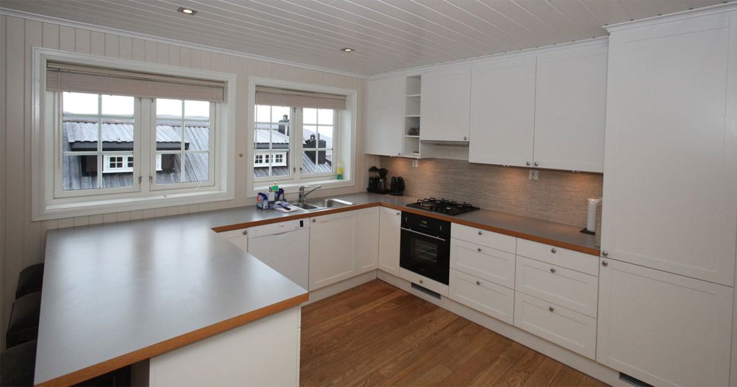 Enheden har veludstyret køkken med gaskomfur, 4 kogeplader, opvaskemaskine, køleskab og fryser.