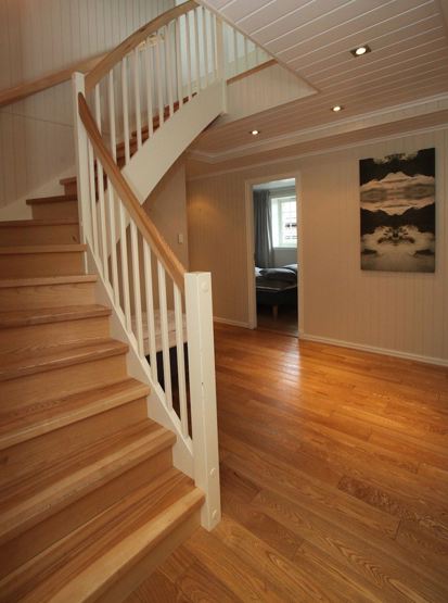 Stueplan stor gang med masser af skabsplads, 3 soveværelser, 2 brusere/1 badekar, 3 WC, 1 sauna. På 1.sal, kombineret køkken, spisestue og opholdsstue pejs, TV og gulvvarme. 1 bruser, 1 toilet. Udgang til stier og løjper. 2 sal 2 soverum med loft til kip og skråvægge, kan have gulvmadrasser. Flot udsigt og interiør i stilfuldt nordisk design.