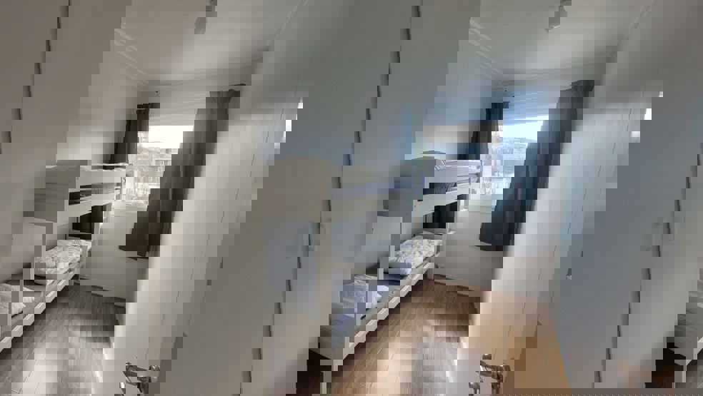 Soveværelse 1: 1 enkeltseng + 1 køjeseng. Soveværelse 2 + 3 + 4 + 5: 1 familie køjeseng. Soveværelse 6 + 7 + 8: 1 køjeseng