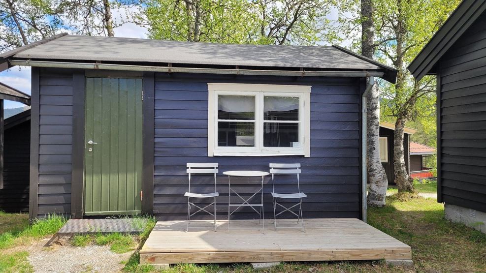 Enkel campinghytte med køyeseng, kokke muligheter (kjøleskap, utstyr, platetop med 2 kokeplater). Dusj, toalett og vaskerom i felles sanitærbygning.
