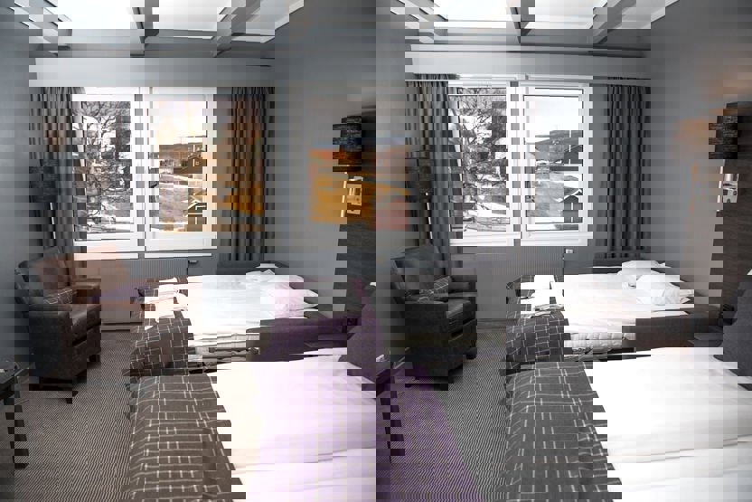 Hotellet har 72 rom, hvor alle er dobbeltrom med enten to enkle senger eller en queensize seng. To av våre rom er allergirom med parkett. Halvparten av rommene har sovesofa og disse brukes som familierom med plass til to voksne og 2 barn. Resepsjonen tildeler rom etter hvor mange personer som skal ha rommet.