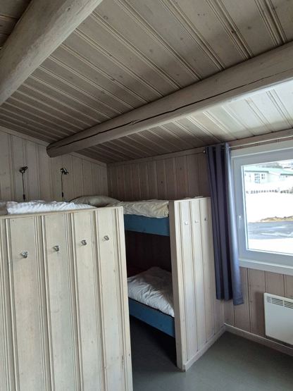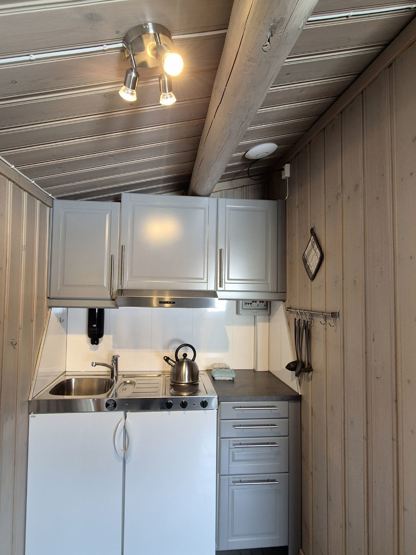En av våre mindre hytter med plass til 4 gjester (2 køyesenger). Hytta har en koselig stue, en sofa og et kjøkken med innlagt vann. Len deg tilbake og nyt ferien hos oss!