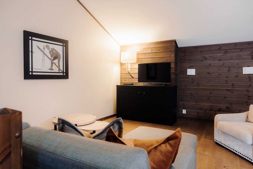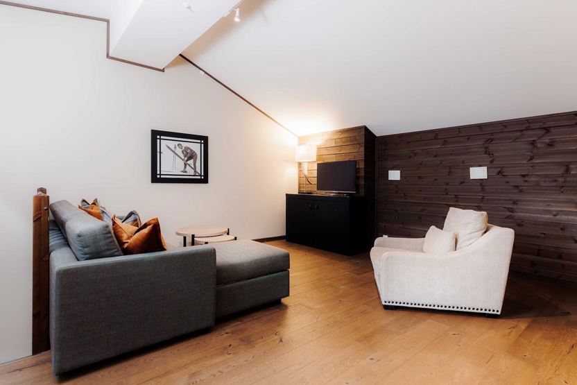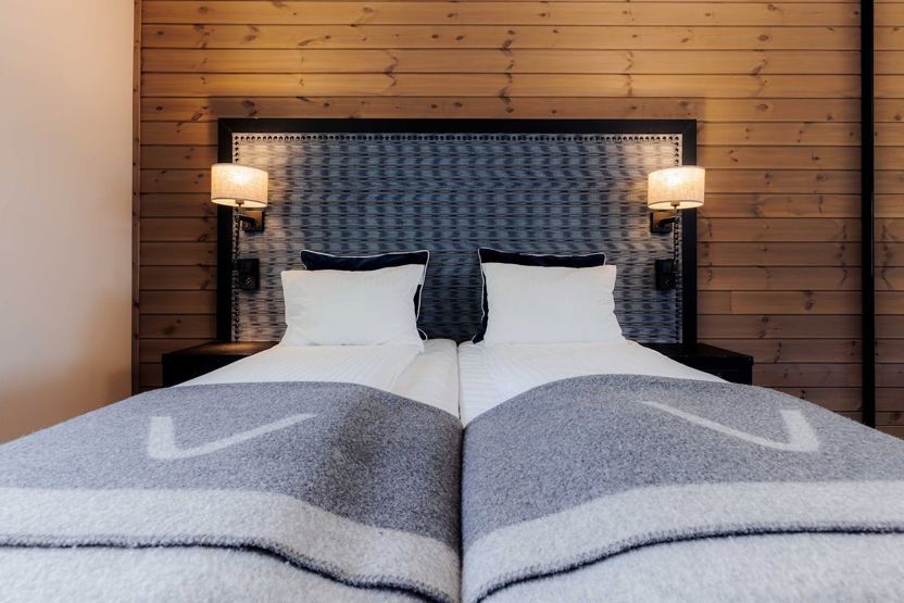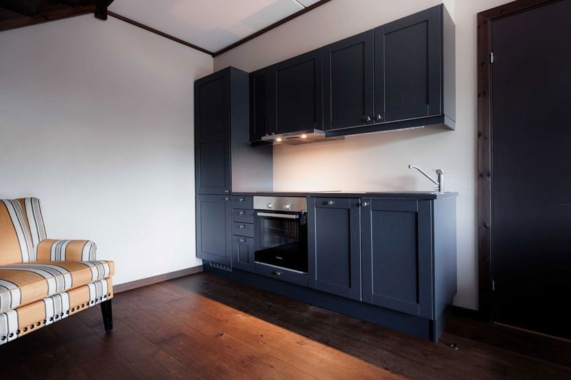 Leilighetene er flott innredet og går over to etasjer. I første etasje finner man et soverom med dobbeltseng og TV, baderom med dusj samt romslig stue med spisegruppe, TV og fullt utstyrt kjøkken. I den romslige 2. etasjen finner man to soverom med dobbeltseng samt en stor loftstue med TV, sovesofa og et bad til. Det er mulig med oppredning til 2 personer på sovesofa samt 2 ekstrasenger i leiligheten. Alle leilighetene finner man i 4. etasje i Badefløyen med balkong og utsikt vestover.