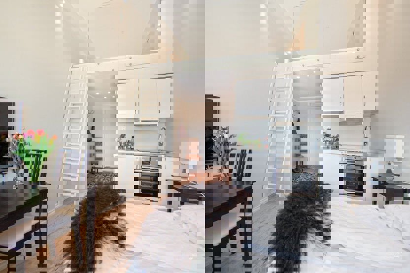 A Studio 2-4 senge, lejlighed i hotel, 1 soveafdeling + hems . 25 kvm + hems. Opholdsrum med køkkenafdeling, spiseplads, dobbeltsenge, stejl stige til hems med 2 madrasser. Balkon. Gulvvarme i entré og badeværelse. 1 badeværelse med bruser og WC.