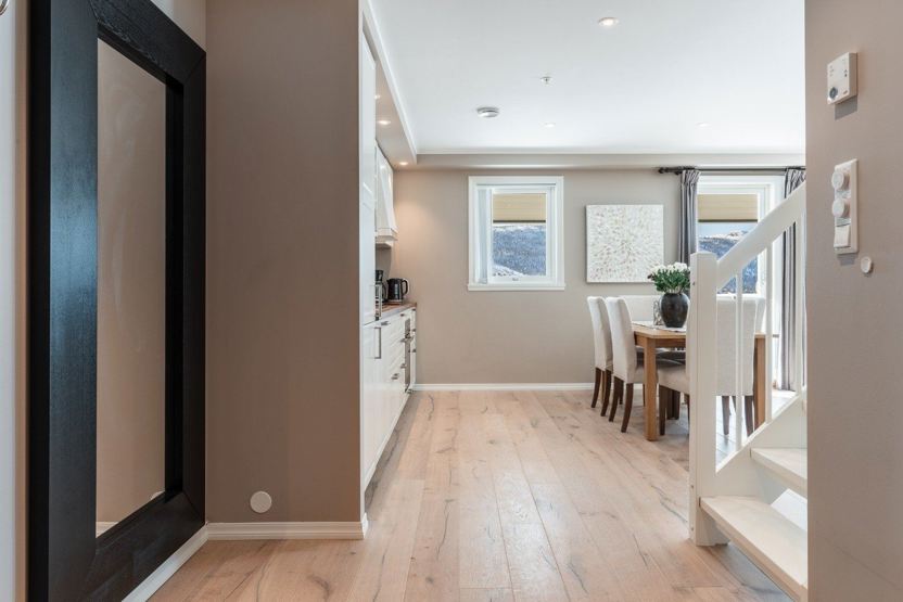 Entre, åpen stue/kjøkkenløsning, 2 bad og 3 soverom ( 2 etasjer )