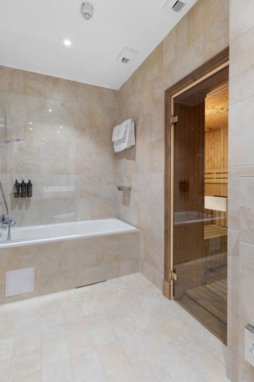 Bad 1 = 1 WC, 1 bruser, hårtørrer, sauna. Bad 2-4 = 1 WC, 1 bruser