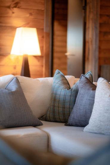 Jegerbaren og Kafe Lobby med indbydende sofaarrangementer foran pejsen.