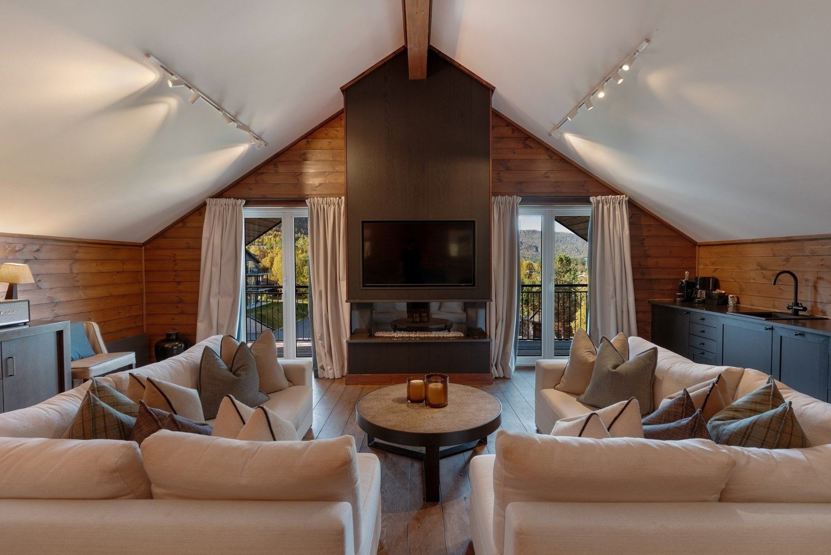 Opholdsstue med sofagruppe, TV og spiseplads til 12 personer. Balkon. Elevator direkte til Spa-afdeligen. Adgang til fri Wi-Fi (med forbehold for eventuelle forstyrrelser hos bredbåndsleverandøren).