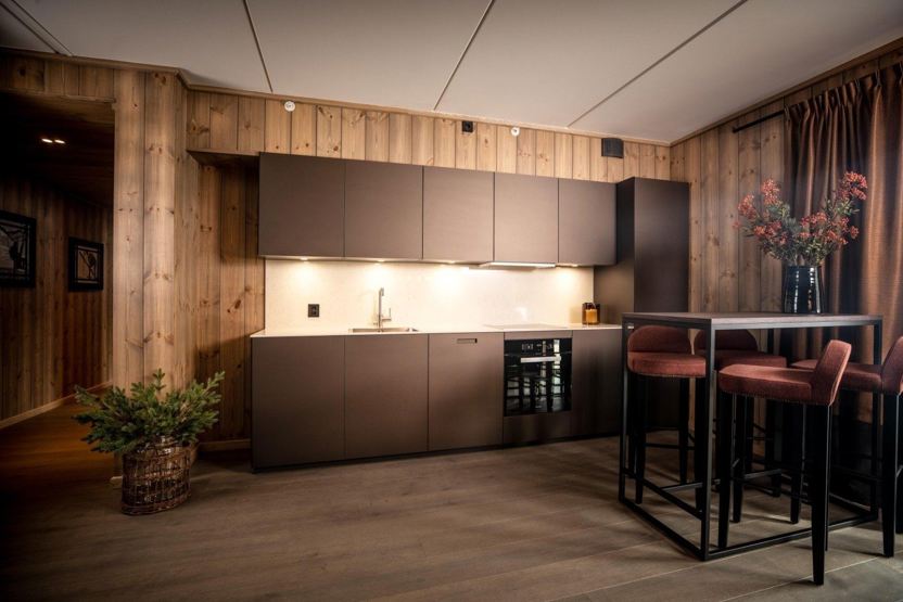 Lodge-suitene finner man i tilstøtende bygg til Vestlia Resort. Du sjekker inn i hotellets resepsjon, og går tørrskodd til Vestlia Lodge gjennom garasjeanlegget som ligger vegg i vegg med resorten - og har selvsagt full adgang til alle hotellets alle flotte fasiliteter. Familiesuitene har separat soverom med en herlig dobbeltseng, eget soverom for barna med familiekøye, samt stue med fullt utstyrt kjøkken, spisegruppe, og sofagruppe. Det er i tillegg mulig å sette inn en ekstraseng i stuen. Videre finner du flatskjerm, delikat baderom med dusj og store vinduer som åpner opp til en deilig balkong eller terasse.