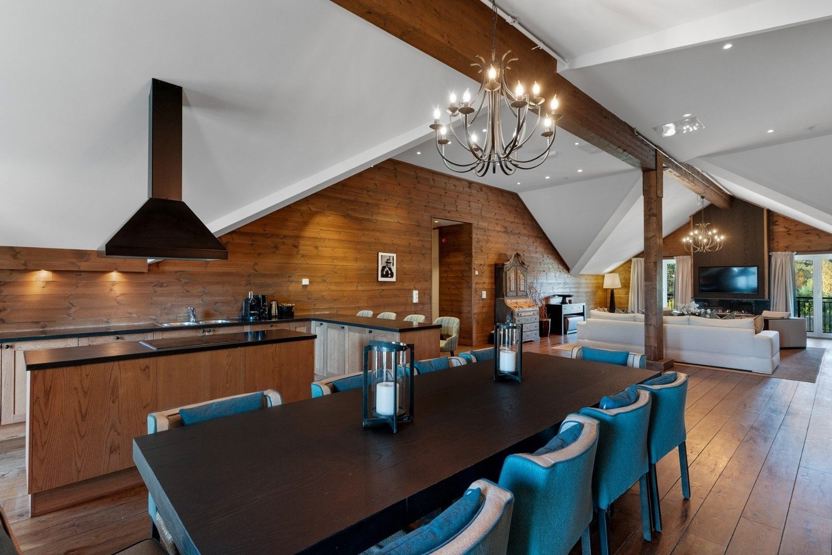 Opholdsstue med sofagruppe, TV og spiseplads til 12 personer. Balkon. Elevator direkte til Spa-afdeligen.