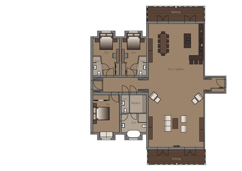 Bad 1 = 1 bruser, 1 WC. sauna. Bad 2+3 = 1 bruser, 1 WC