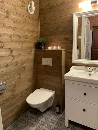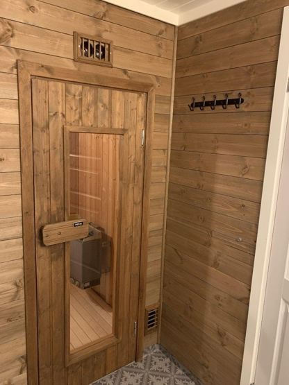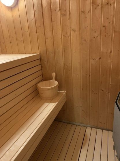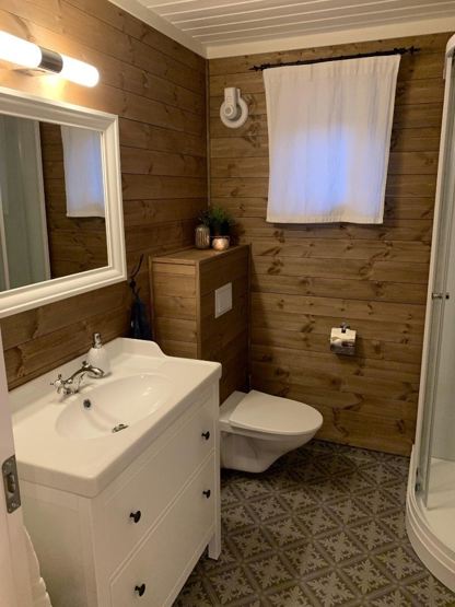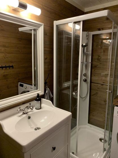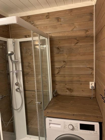 Badværelse 1: 1 bruser, 1 WC. Badværelse 2: 1 bruser, 1 WC. Sauna. Vaskemaskine.