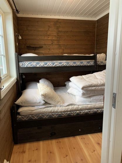 Soveværelse 1: 1 dobbeltseng (180cm x 200cm). Soveværelse 2+3: 1 familie køjeseng (75cm/120cm x 200cm) Hems: 1 dobbeltseng(180cm x 200cm) + 1 enkeltseng (90cm x 200 cm)