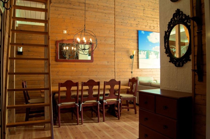24B, lejlighed med 9+2 senge, 80 kvm. 3 soveværelser + hems. Nogle soverum har lav lofthøjde. Kombineret opholdsstue og køkkenafdeling med spisebord til 10 personer. Opholdsstue med pejseovn, TV. 2 brusere, 2 WC. Sauna. Udendørs parkering. Balkon.
